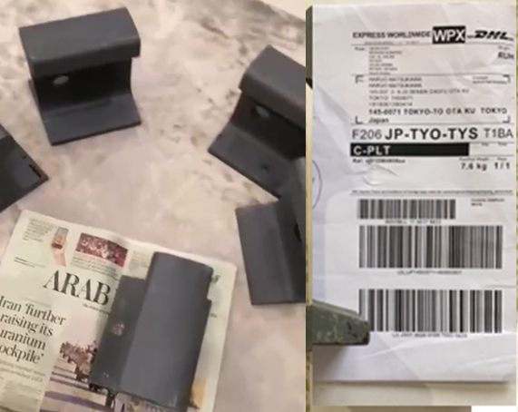 | 【海外在庫写真 ・海外からの発送伝票】 | 【日本国内にて等分に切削された商品】 |